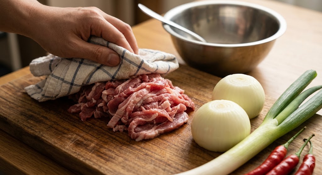 Step 1: 고기 전처리와 재료 손질 (핵심: 연육과 핏물 제거)