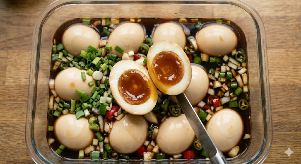 - 숙성: 냉장고에서 최소 6시간, 가급적 하루 정도 숙성시키세요. 시간이 지나면서 삼투압 현상으로 간장이 계란 속으로 스며들어 젤리처럼 쫀득해집니다.